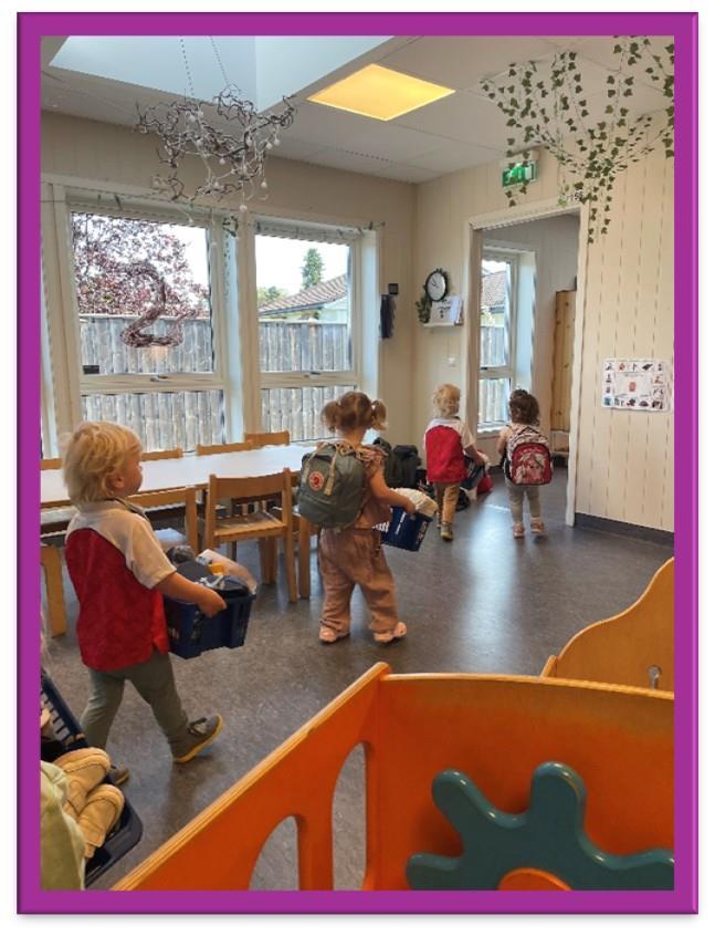 • løpet av mai/ juni har pedagogene som får barn fra andre avdelinger en samtale med pedagogen som har hatt barnet det barnehageåret, der relevant informasjon om enkelt barnet overføres, for å sikre en god oppstart og videreføring av eventuelle tiltak og lignende.