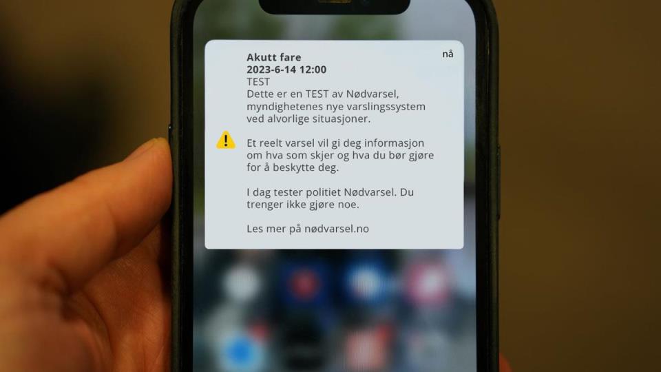 Test av Nødvarsel 14. januar 2026 Onsdag 14. januar klokken 12.00 testes Nødvarsel på mobil og Sivilforsvarets varslingsanlegg over hele Norge i en felles nasjonal varslingsprøve. Publisert 12.01.2026 kl. 08:45