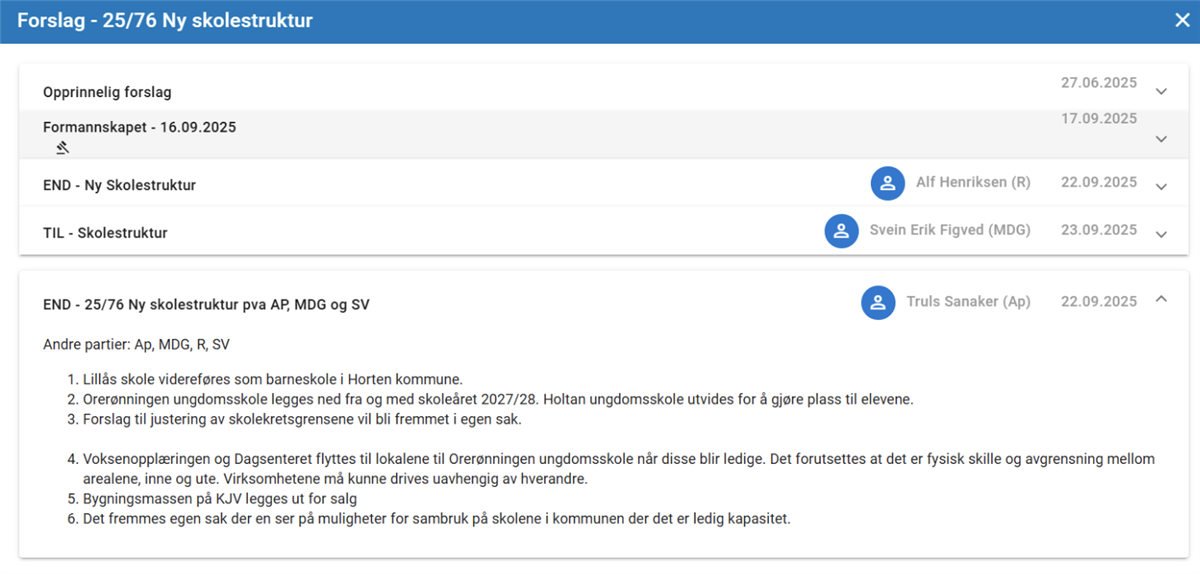 Skjermdump av forslaget som i dag fikk flertall i kommunestyret.