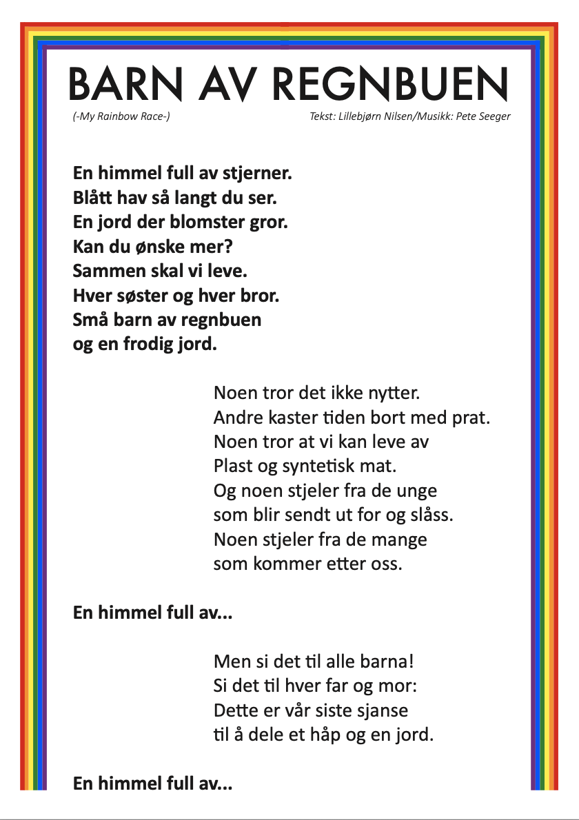 Vi deler Lillebjørn Nilsens legendariske tekst, og så er vi alle barn av regnbuen.