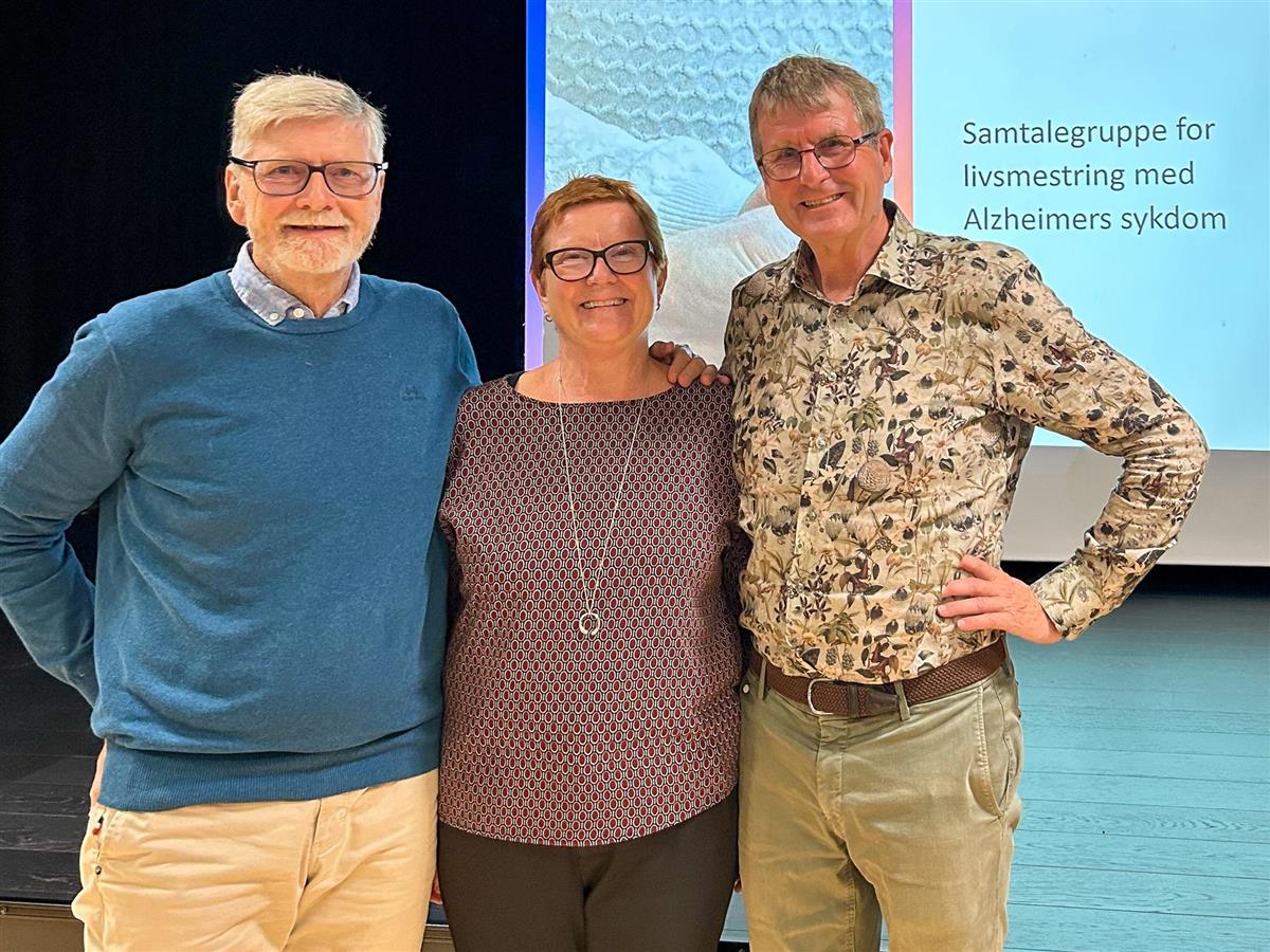 Fra venstre: Per Gunnar Opheim, Trine Hauger og Bjørn Hauger fra organisasjonen Samskapingslabben.Temakveld om Alzheimer-sykdom